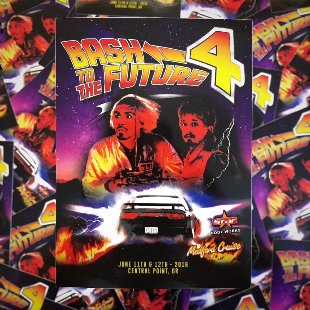 To commemorate the recent Bash To The Future 4 event, we are selling a very limited run of these slap stickers designed by Factory83 and printed by AWStickers.
